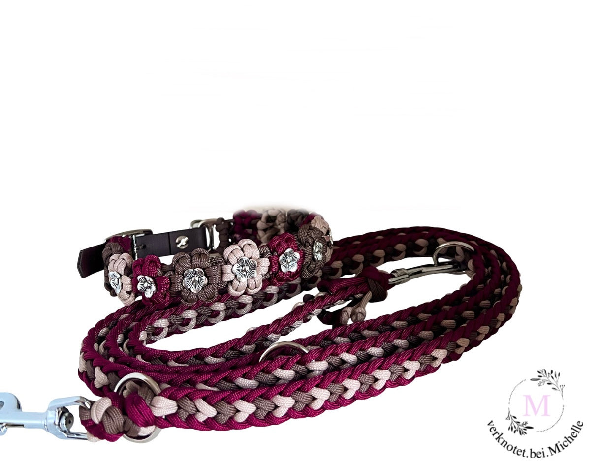 Das Paracord Set „Bella“ ist ein echtes Schmuckstück für deinen Hund. Mit viel Liebe zum Detail handgefertigt, besticht dieses Halsband durch ein aufwendiges Blütenmuster. Jede einzelne Blume ist ein kleines Kunstwerk und wird durch eine kleine Blütenperle in der Mitte stilvoll abgerundet. Perfekt für Hundefreund:innen, die auf verspielte Eleganz setzen und Wert auf Exklusivität legen.