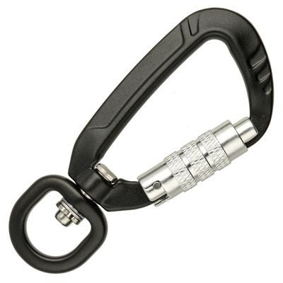 Dieser hochwertige Sicherheitskarabiner wurde speziell für Anwendungen entwickelt, bei denen maximale Sicherheit und Bewegungsfreiheit erforderlich sind. Der Karabiner besteht aus robustem Aluminium mit einem drehbaren Wirbel und einem zuverlässigen Schraubverschlussmechanismus.